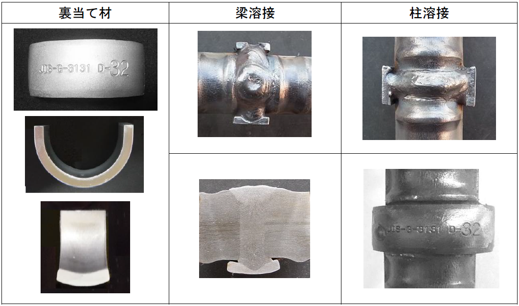 - 裏当て材は JIS G 3131、溶接材料は JIS Z 3312 材を使用